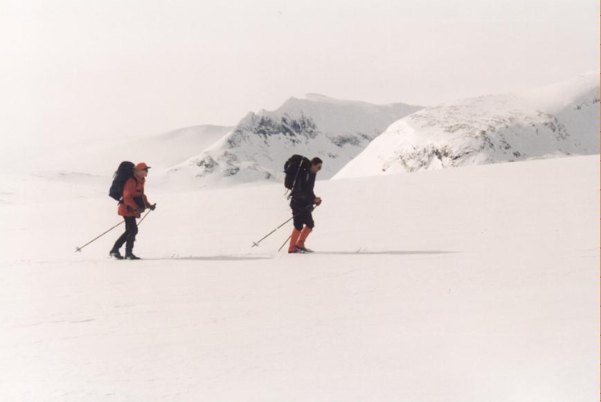 Bernt M. Johnsen og Kjetil Svarstad med Sylmassivet i bakgrunnen, påsken 1995