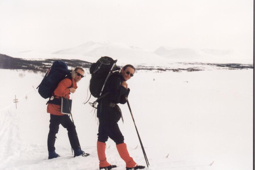 En liten hvil på stavene på en lang etappe. Sylane, påsken 1995
