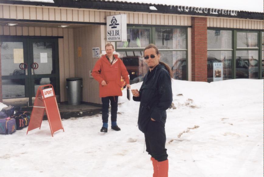 Ås i Tydal, venter på bussen hjem, Bernt M. Johnsen og Kjetil Svarstad, påsken 1995
